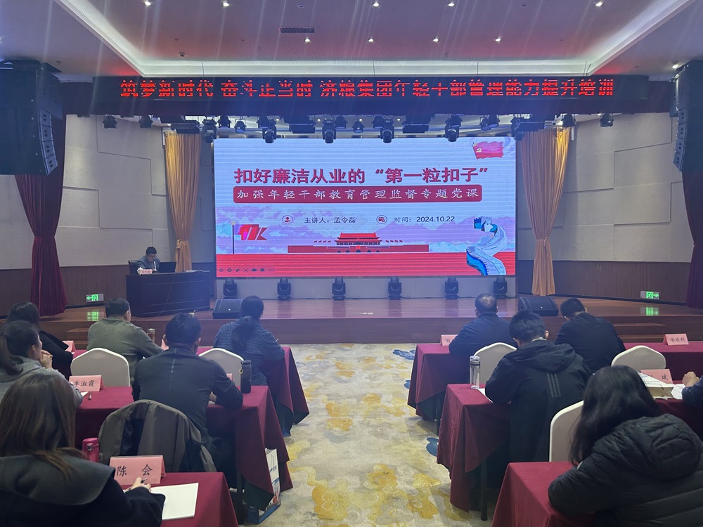 10月22日,濟(jì)糧集團(tuán)紀(jì)委書記以《扣好廉潔從業(yè)的“第一??圩印薄窞轭},為濟(jì)糧集團(tuán)年輕干部培訓(xùn)班全體學(xué)員講授了一堂內(nèi)容深刻、發(fā)人深省的廉政黨課。